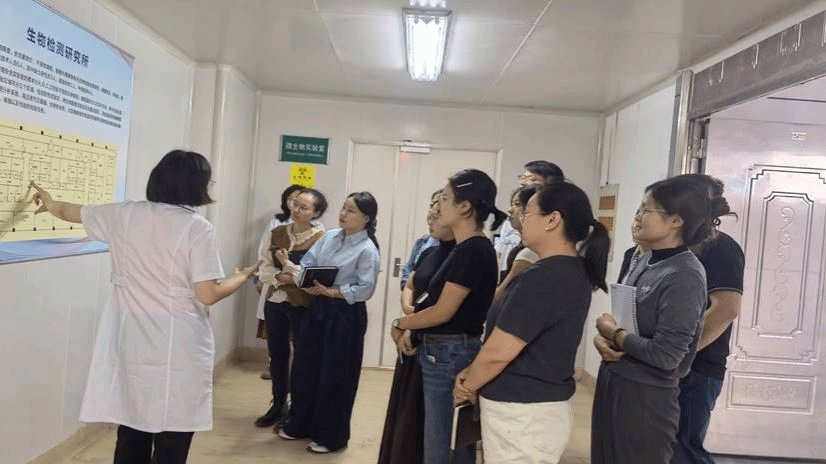 座谈会结束后,参观活动进入核心环节 —— 实验室现场观摩。9 时 30 分至 11 时 30 分,在检验院专业讲解人员的引导下,团队首先走进药品检验实验室。讲解人员围绕药品质量控制全流程,通过现场演示成分分析、纯度检测等关键检验环节,直观呈现了高效液相色谱仪、气相色谱仪等精密仪器的操作流程,并深入解读药品从原料入厂到成品出库的全周期质量管理体系,让在场教师对药品检验的严谨性与规范性有了更深刻的理解。