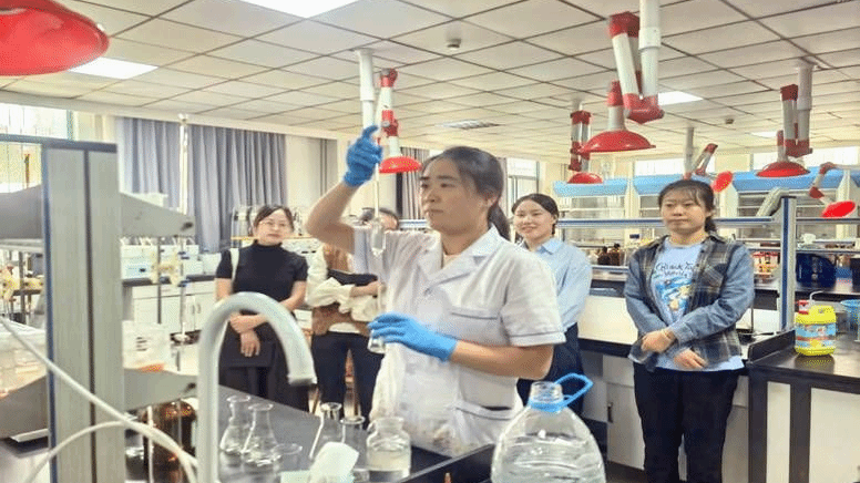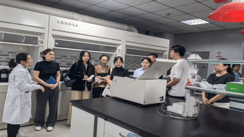 下午 2点,团队转场至食品检验实验室。讲解人员针对食品全流程检验项目展开详细介绍,不仅逐一说明高效液相色谱仪、原子吸收分光光度计等核心仪器设备的功能参数与操作规范,还通过现场演示,清晰呈现了食品添加剂、重金属污染物等关键指标的检测方法。教师们认真记录操作要点,不时就技术难点与讲解人员交流,现场学习氛围浓厚。